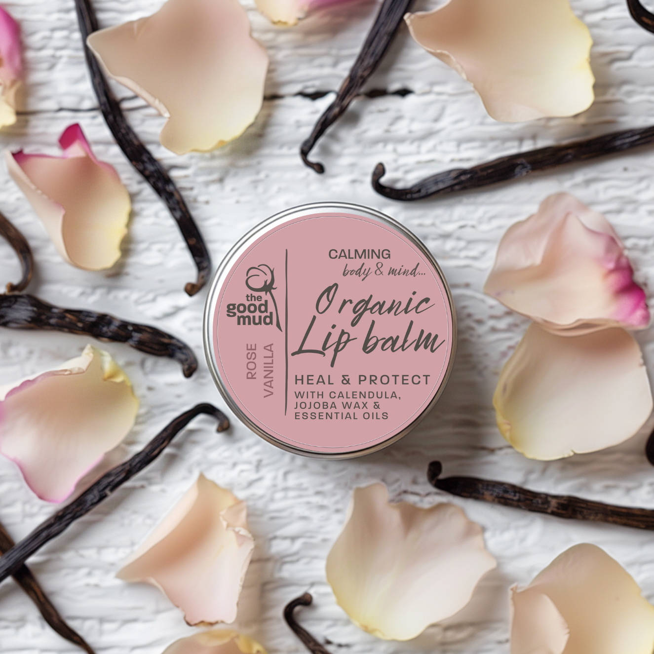 Organic Vegan Lip Balm & Wellbeing tool: Rose Vanilla 15g