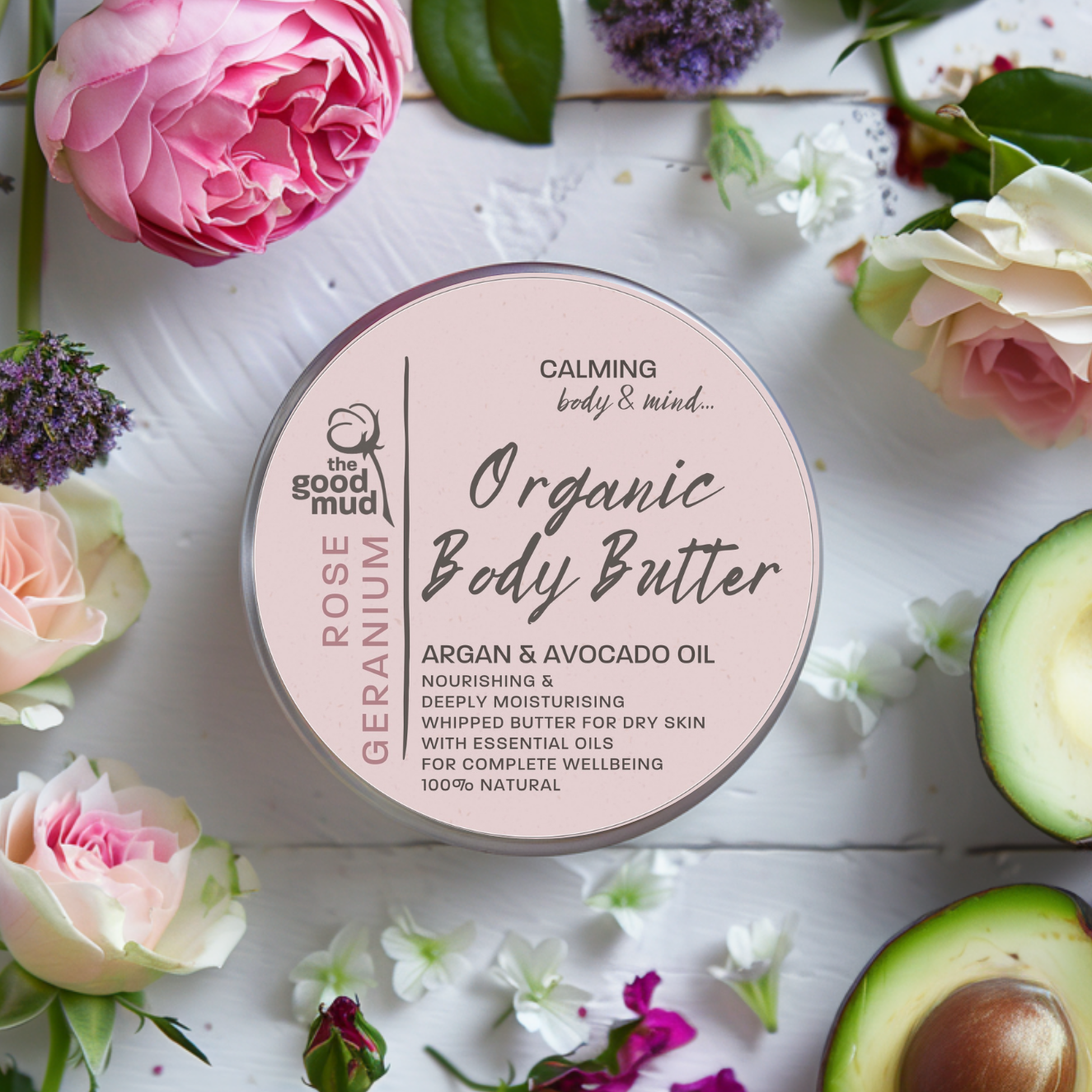 Rose Organic Body Butter with Avocado and Argan Oil 150ml